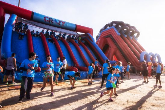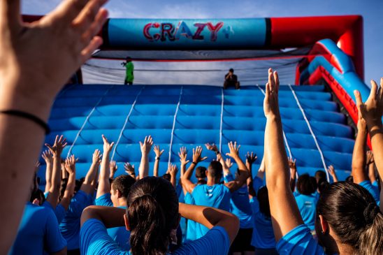 Na Crazy Race, o objetivo dos participantes é diferente. Nada de busca por tempos ou melhores marcas pessoais, mas apenas diversão em meio a obstáculos gigantes infláveis.