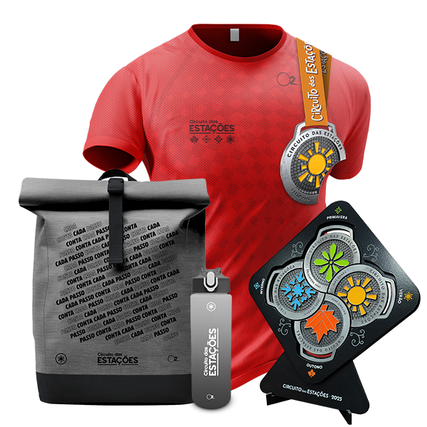 No Kit Básico, você encontra camiseta, mochila, garrafa e a medalha pós-prova que vai te lembrar de cada superação. Prepare-se para correr, se hidratar e celebrar cada etapa com estilo e energia!